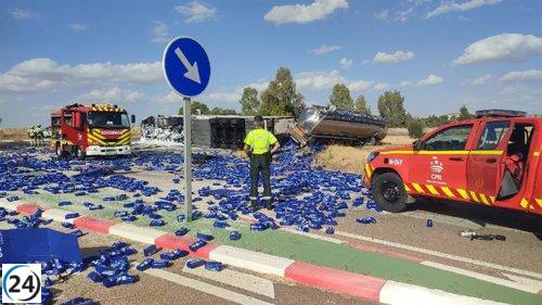 Accidente en Azuaga deja dos personas gravemente heridas tras colisión entre camiones.