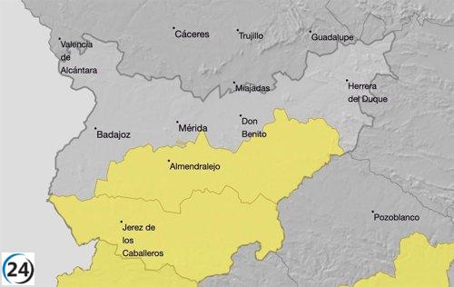 Alerta amarilla por lluvias y tormentas en Vegas del Guadiana, Barros y La Serena este domingo.