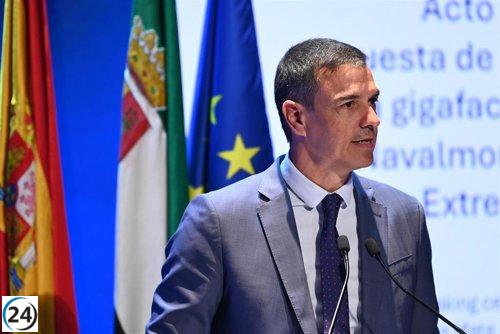 Pedro Sánchez llega a Cáceres para supervisar la A-58 y asistir a la V Convención de Turespaña.