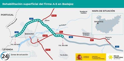 Cortes de tráfico en Badajoz por obras en la A-5 esta semana.