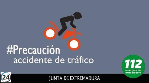 Hombre de 37 años sufre lesiones leves en un accidente de tráfico en Mengabril, Badajoz.