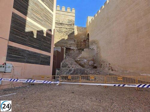 Derrumbe leve en la Alcazaba de Badajoz cerca de la Plaza Alta.