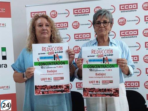 CCOO y UGT de Extremadura inician una campaña prolongada para exigir la jornada laboral reducida.