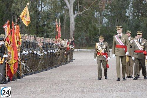 Felipe VI supervisa la ceremonia de jura de bandera en el Centro de Formación de Tropa de Cáceres.