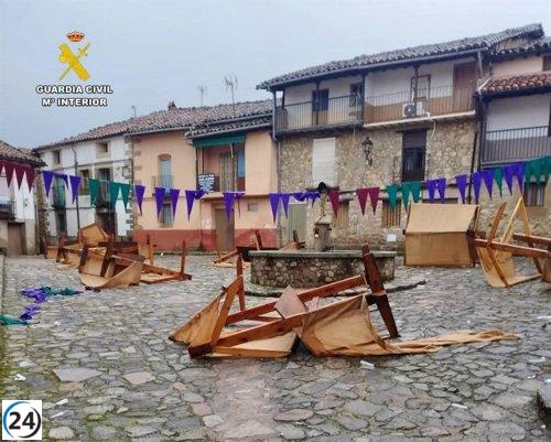 Dos jóvenes bajo la lupa por vandalizar diez puestos en el mercado medieval de Guijo de Santa Bárbara.