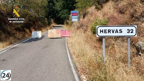 Interrumpido el tráfico en la CC-224 por labores de limpieza en Hervás.
