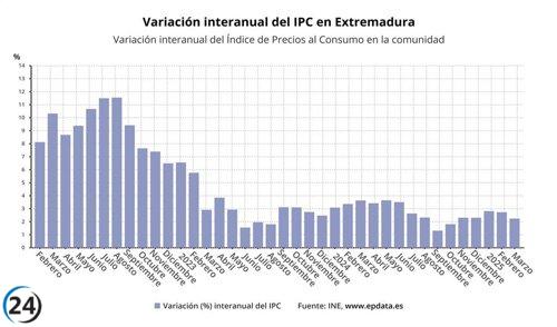 El IPC en Extremadura se reduce al 2,2% en marzo, registrando una caída de 0,5 puntos respecto al mes previo.