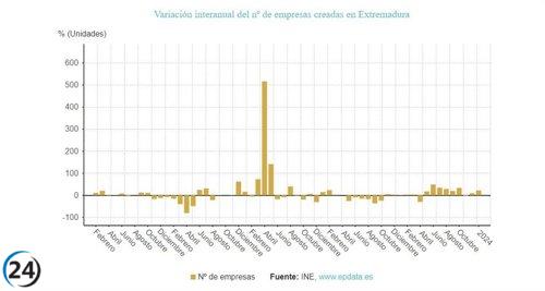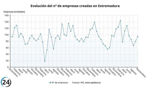La tasa de creación de empresas en Extremadura disminuye un 3,06% en noviembre en comparación con el año anterior.
