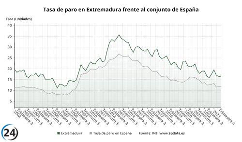 Extremadura lidera la recuperación laboral con la creación de 8.900 empleos en 2023 y una tasa de paro del 16,3%, la más baja desde 2008.
