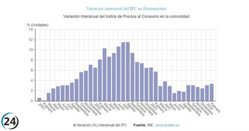 Aumento del 3,3% en los precios en Extremadura durante febrero.