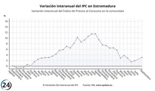 El aumento anual del IPC en Extremadura alcanza el 3,1%, con un incremento mensual del 0,4%.