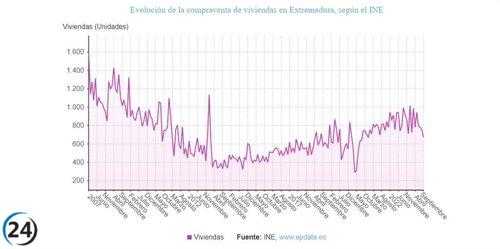 La evolución negativa en la compraventa de viviendas en Extremadura se intensifica en agosto con una disminución del 4,06%