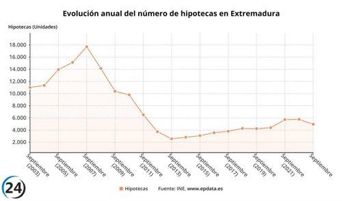 La evolución interanual en septiembre provoca una caída del 21,4% en la firma de hipotecas en Extremadura