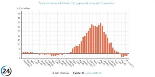 La tasa de inflación industrial en Extremadura disminuye al 2,8% durante noviembre.