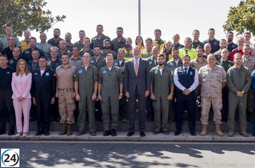El monarca se reúne con el equipo aéreo que combatió los incendios forestales este verano.