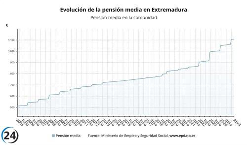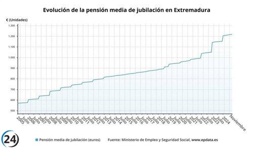 El aumento de la pensión media de jubilación en Extremadura supera la media nacional, llegando a 1.214 euros.