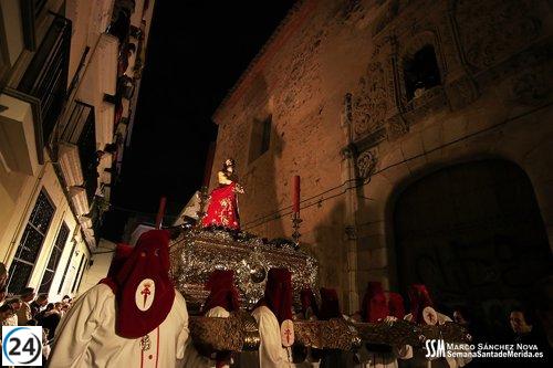 Mérida celebra el Lunes Santo con la procesión de Jesús de Medinaceli, el Cristo de las Injurias y la Virgen del Rosario.
